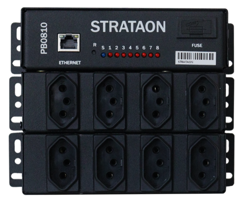 Conecta-se na rede local automaticamente e na internet para integração com o sistema Strataon Cloud, neste caso a operação pode ser feita a partir de qualquer dispositivo conectado na internet. É fornecida em dois modelos para uso em racks de 19 polegadas ou para montagem em painel.
